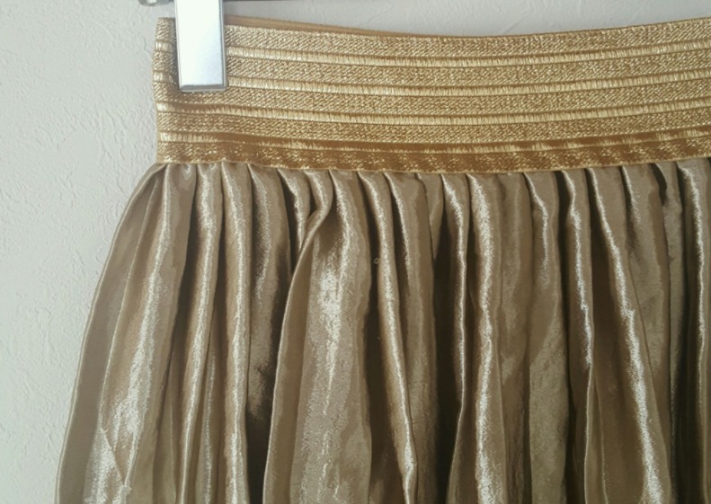 ダーク系トーンのお洋服と合わせると光沢とプリーツの立体感が際立ちます。