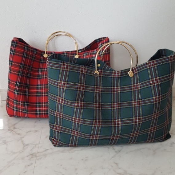 今日ご紹介するのはメタルハンドルのチェック柄バッグ。