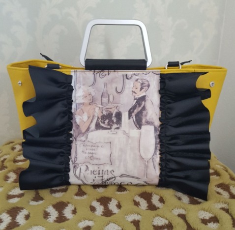 壁紙アートフリルバッグはハンドメイドということもあり、究極の個性派バッグです。